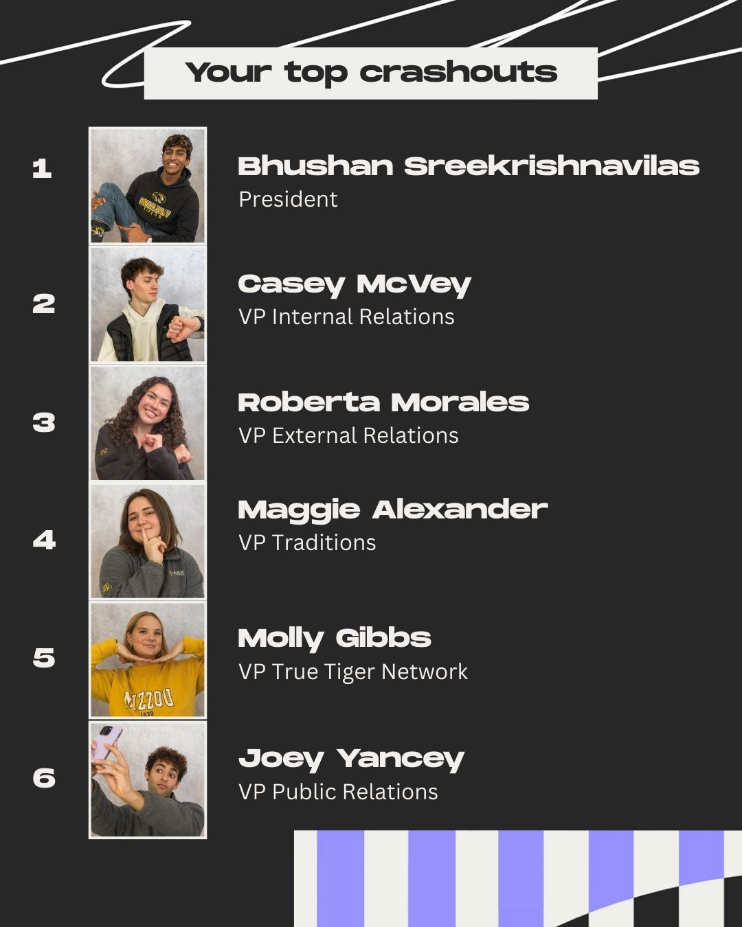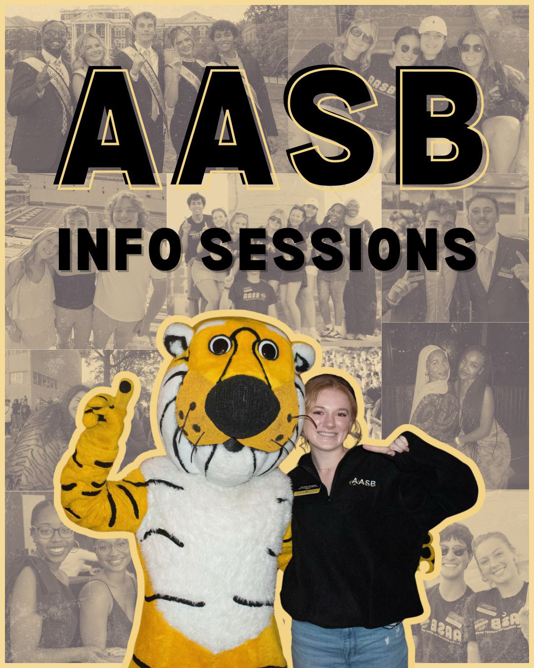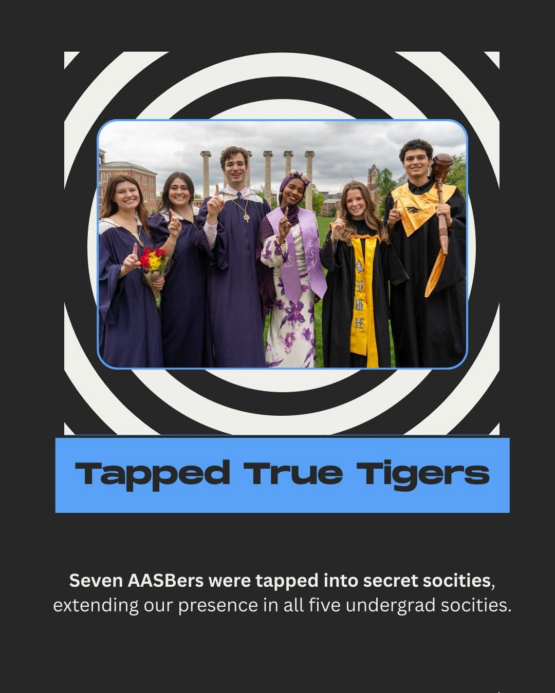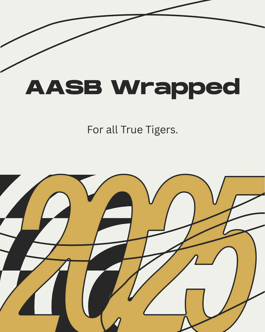 2025 AASB Executive Board: Bhushan Sreekrishnavilas (President), Casey McVey (VP Internal), Roberta Morales (VP External), Molly Gibbs (VP True Tiger Network), Maggie Alexander (VP Traditions)