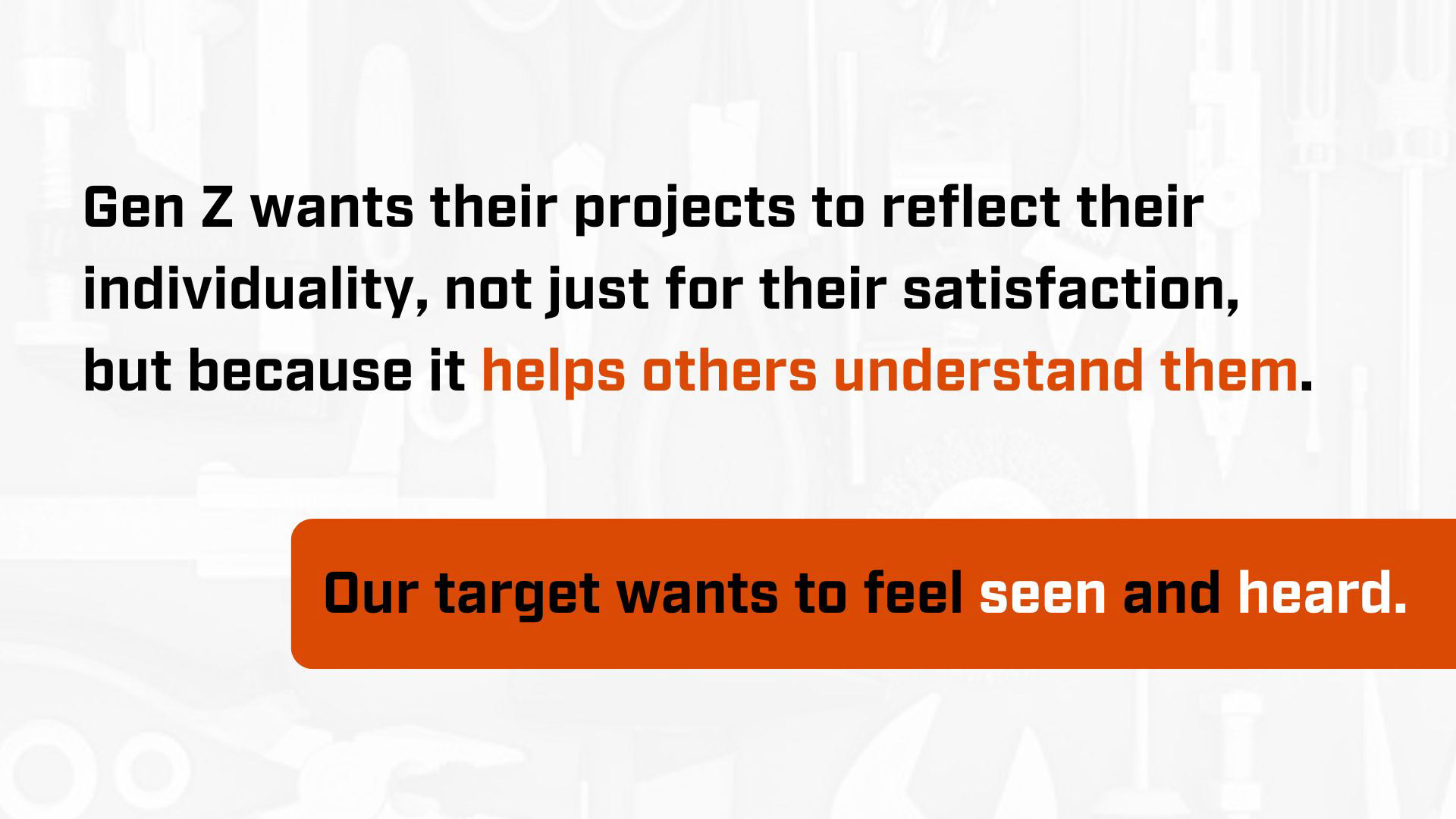 Convince a "tool-timid" Gen Z to invest in Crescent Tools as their go-to hand tool brand for a lifetime of projects.