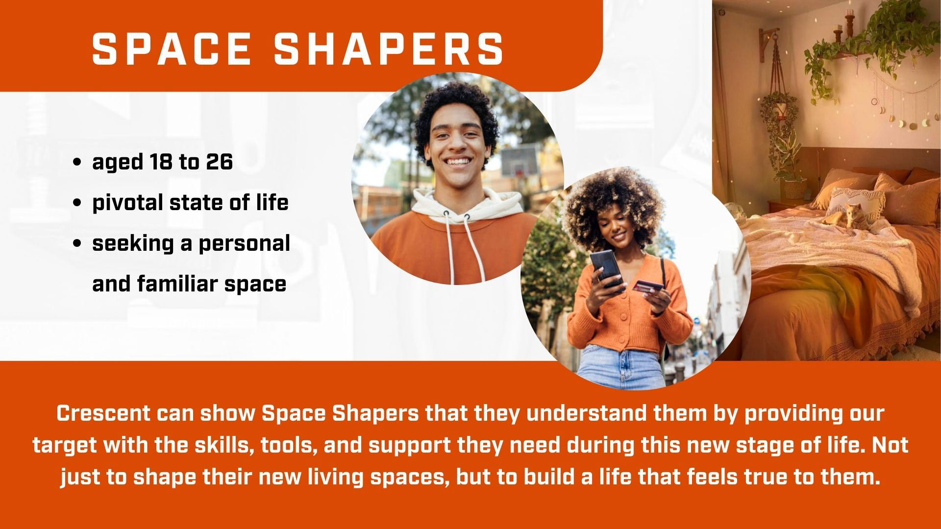 We identified our core audience as The Space Shapers: 18-26 year olds in pivotal life transitions (moving into dorms or first apartments). They crave individuality to help others understand them. If Crescent wants to win this generation, it must pivot from "machismo" messaging to an approach rooted in the invitation.