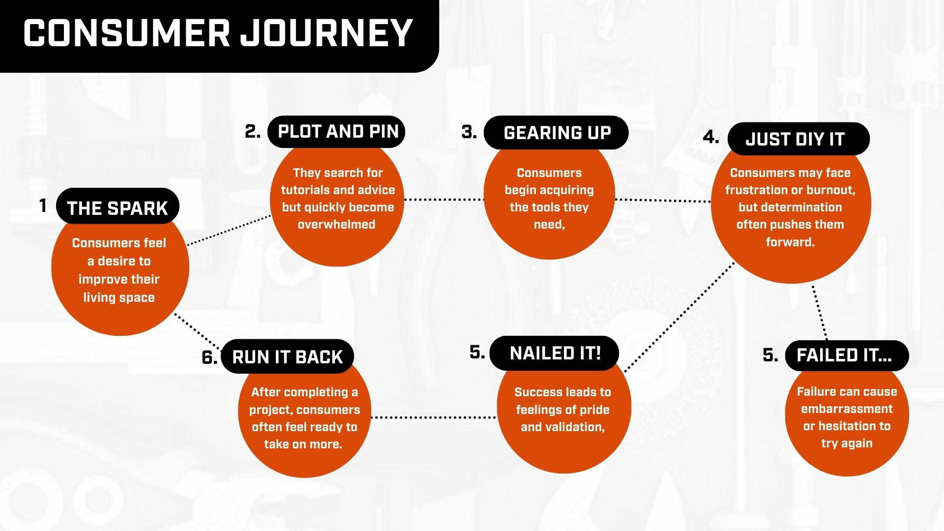 We moved beyond surface-level data by scouring Mintel reports and conducting in-depth interviews. Through projective techniques and in-depth consumer interviews, we identified the friction between Gen Z and the tool category: while this generation dreams of personalizing their rentals, they are paralyzed by a lack of confidence and the high stakes of a security deposit.